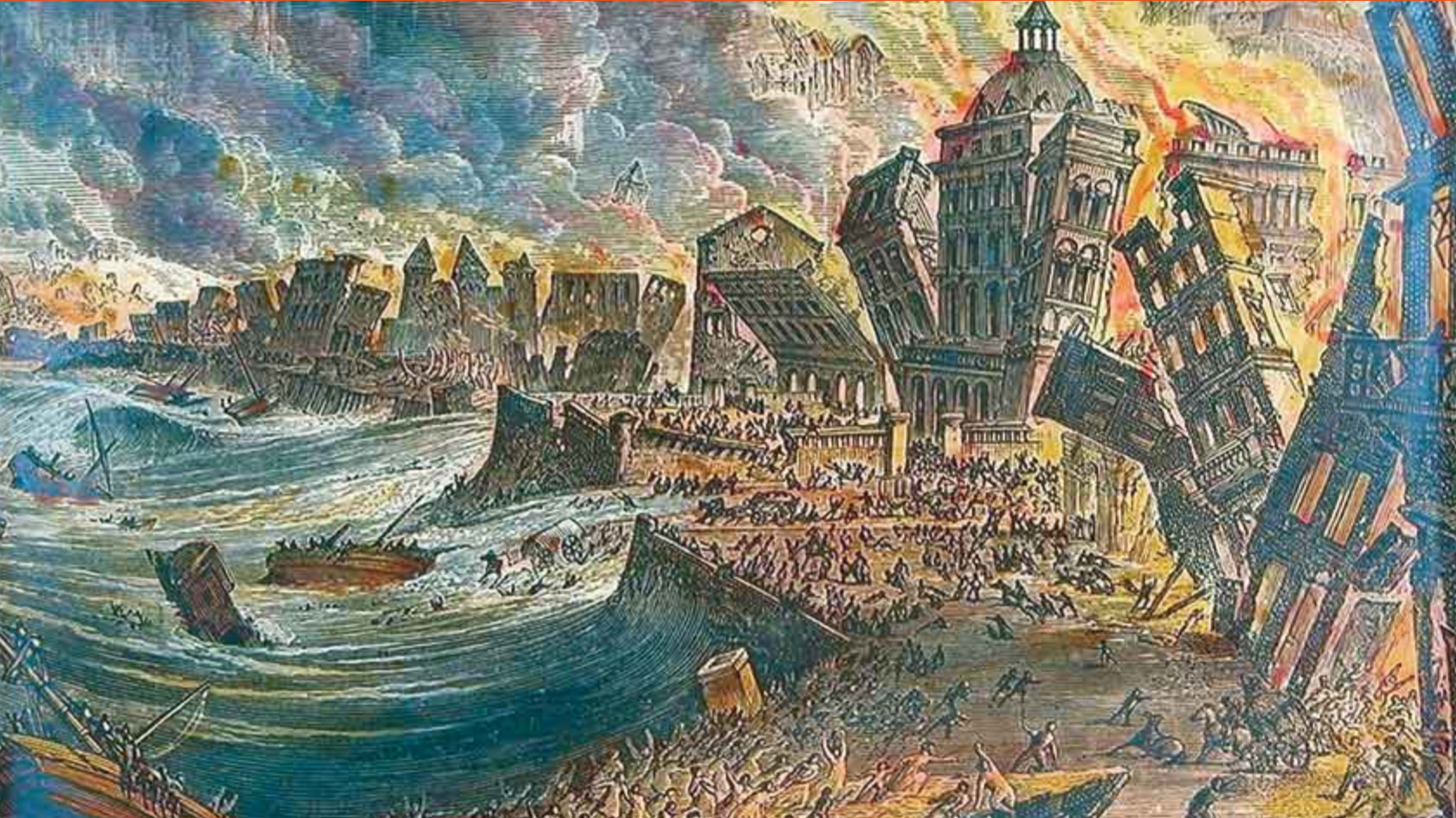 Représentation du tremblement de terre de Lisbonne de 1755.